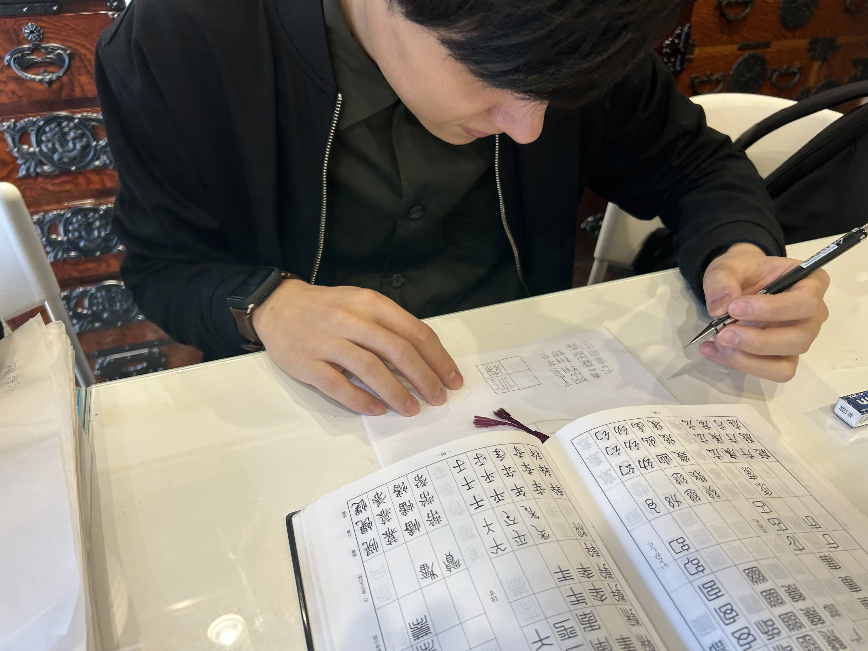 The session takes about two hours in total—around one hour to choose your characters and another to sketch your design. Reservations are required, so please book through the official website in advance.
