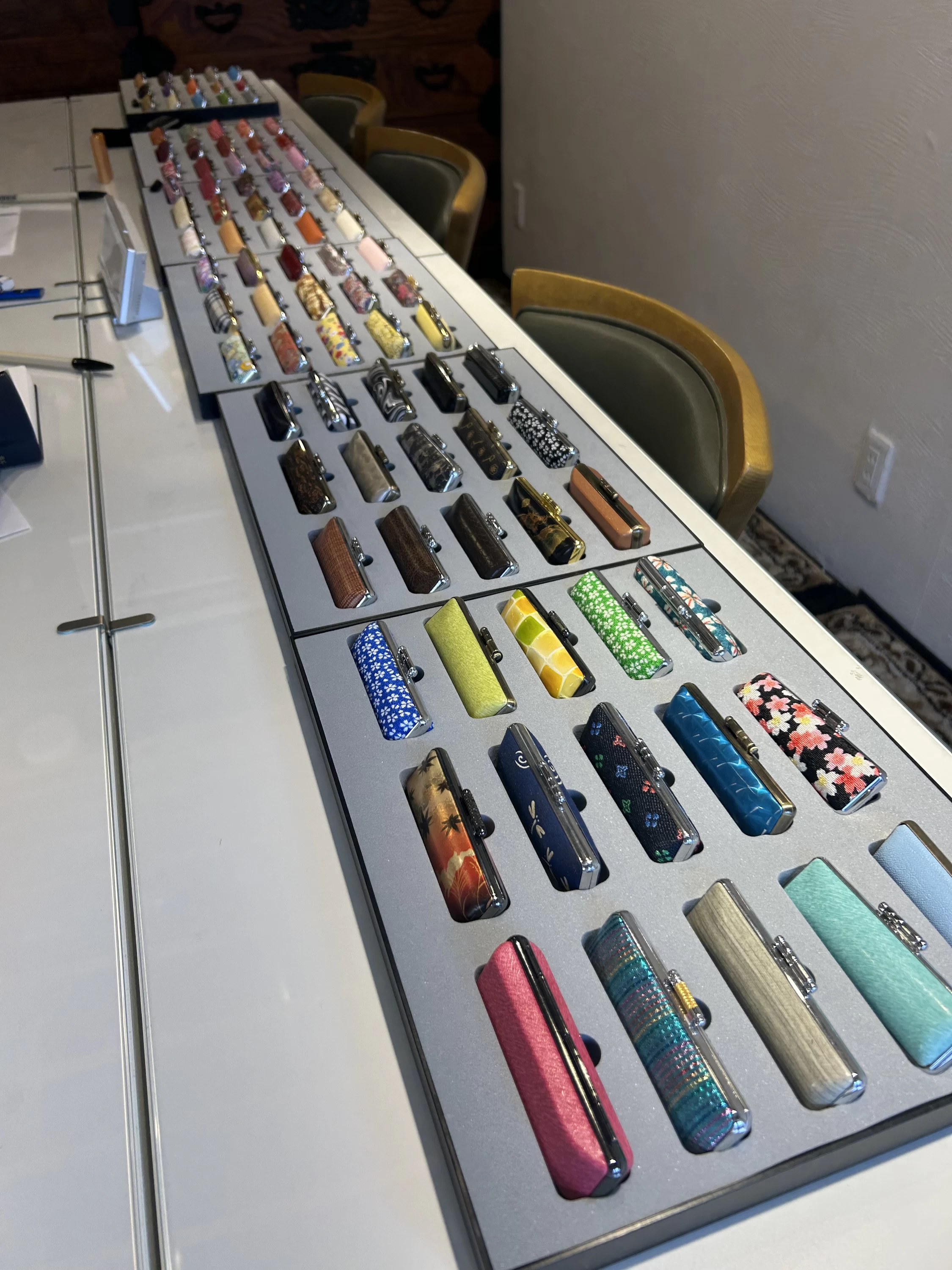Guided by the owner, Mr. Tsukino, you’ll head to the workshop just steps away from the main shop. Inside, you’ll see displays of awards and replicas of beautiful goshuin stamps. During your session, the space is fully private, allowing you to relax and focus on designing your seal at your own pace.