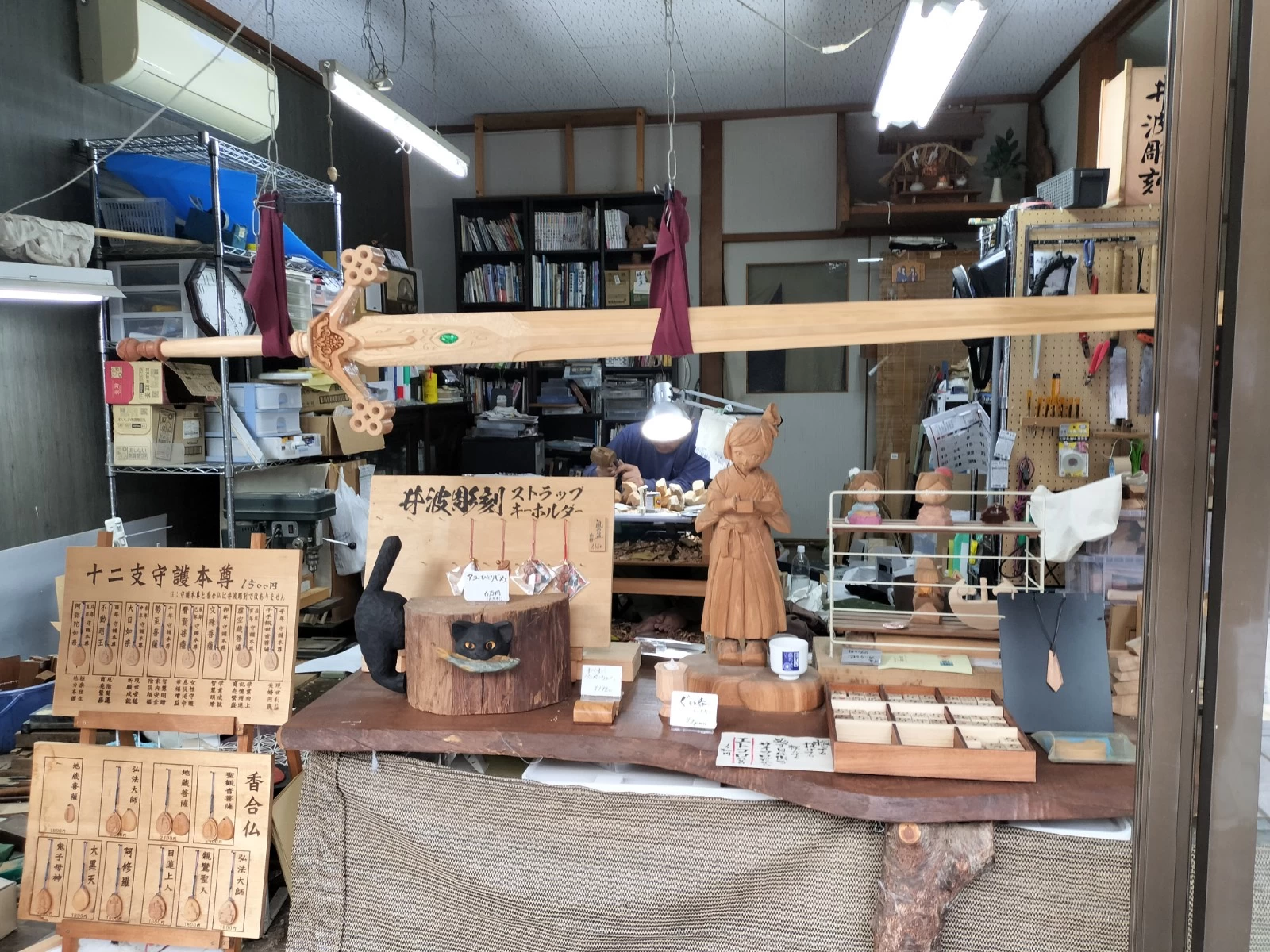 From Yokamachi Square, a gently sloping cobblestone street stretches about 200 meters toward Inami Betsuin Zuisenji Temple. Traditional Inami woodcarving workshops line the way, their open fronts welcoming visitors inside. Step in and you’re met with the scent of fresh wood and the clear sounds of chisels and mallets at work. The open design lets in natural light, allowing you to watch skilled artisans carve wood up close and experience the craft with all your senses.