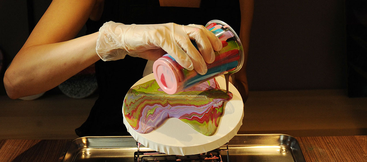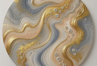 This artwork is characterized by the dynamic patterns that are created by accident, using the fluidity of paint, also known as the "poling technique," by freely dripping various colors of acrylic paint. We also recommend arranging it with sparkling glitter.