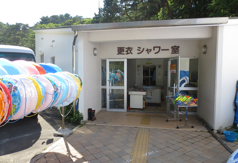 03. An adjacent shower room is open during the beach season, with rental and sales items also provided.