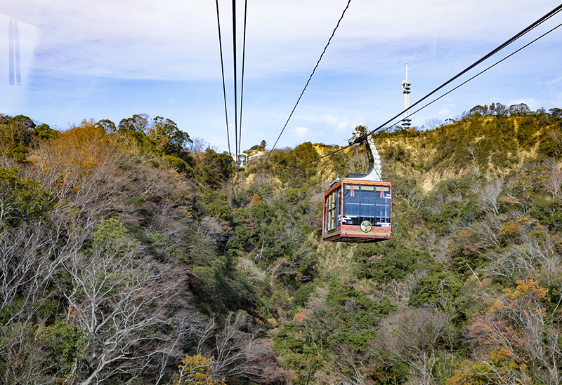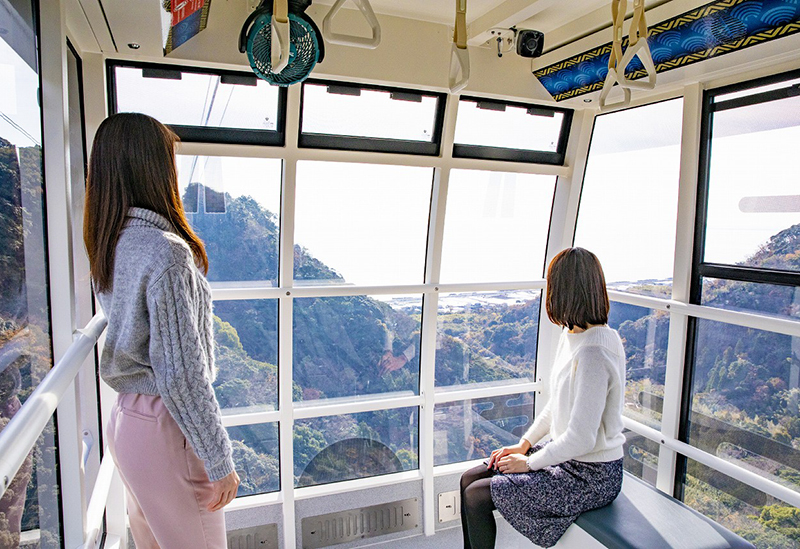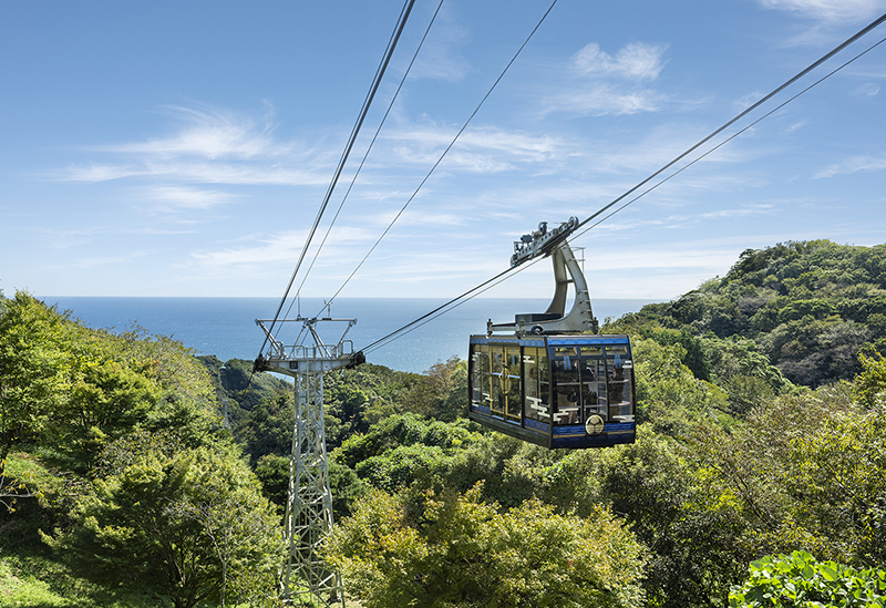 The gondolas are designed like palanquins reminiscent of the Edo period. They offer a spectacular aerial stroll with the sparkling blue-green Suruga Bay below, making you feel like a prince or princess. From the open interior, enjoy a 360-degree panoramic view stretching from Omaezaki, the southernmost point of Shizuoka Prefecture, all the way to the Izu Peninsula.