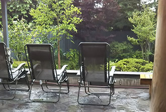 There are five infinity chairs for men and five for women, which are said to have a great relaxing effect. After sweating in the sauna or enjoying a bath, you can relax in an infinity chair and enjoy a refreshing moment, taking in the high sky, the scent of the trees, and the flowing seasonal breeze.