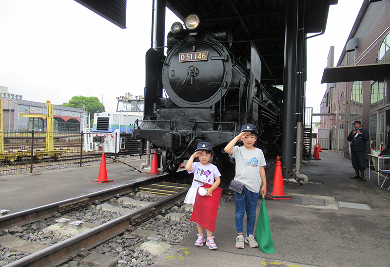 In addition to the "9600-type steam locomotive" (Kyuroku), which is preserved in working order, you can also admire the "D51-type steam locomotive" (Degoichi), known as the "King of SL" among Japanese steam locomotives, running majestically on the tracks within the premises. Railway enthusiasts fix their attention on the long-awaited steam locomotive on display.