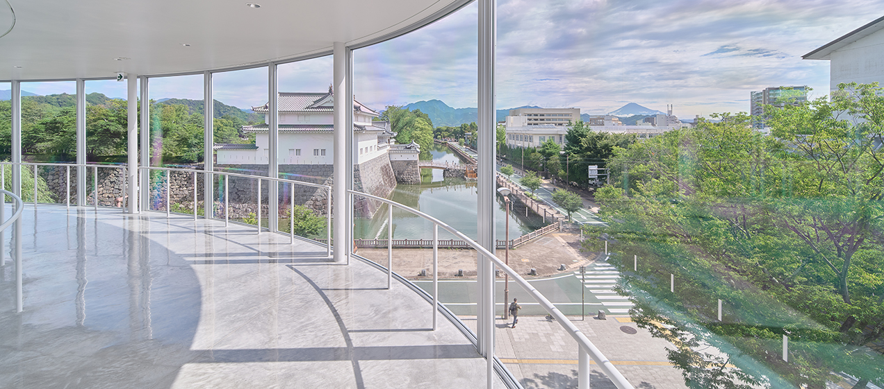 From the third-floor "Observation Lounge," views extend to Mount Fuji alongside the Higashigomon Gate and Tatsumi Yagura of Sunpu Castle Park. At dusk, the mountain may appear tinted crimson. The space also serves as a setting for commemorative photographs.