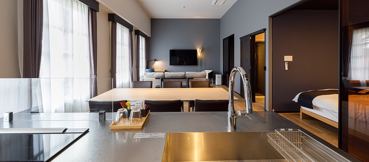 This residence-style hotel consists entirely of 13 spacious suites, each offering over 48m² of space. Rooms range from 1LDK to 2LDK, including loft-equipped and pet-friendly options. Designed for comfort and functionality, the suites provide a relaxing environment for families and friends, ideal for both short and long stays.