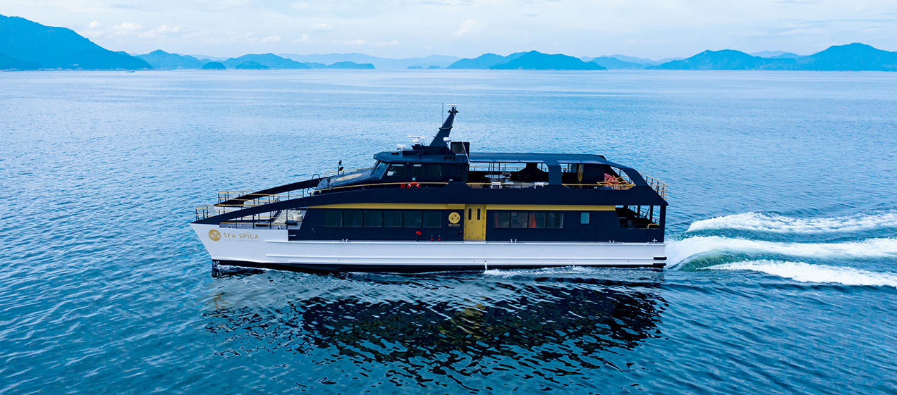 "SEA SPICA" is a sightseeing high-speed cruiser that travels among the distinctive islands of the Seto Inland Sea. Operating between Hiroshima Port and the Onomichi Ekimae Pier, it offers two routes, the "Usagi Course" and the "Shimanami Course," providing a smooth and comfortable journey across the typically calm waters of the Seto Inland Sea. Onboard guides provide clear explanations of the islands' history and culture, adding depth to the experience. The cruise is well-suited not only for sightseeing in Hiroshima but also for commemorative occasions and moments away from everyday routine, with ample time to take in the scenic beauty and unique character of the islands.