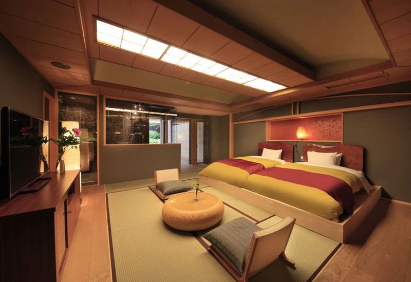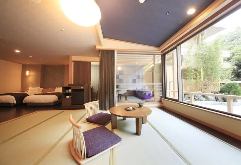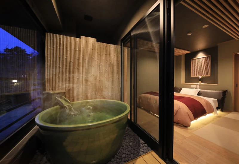 For the ultimate in privacy, escape to Gyokutei—a serene retreat featuring just eight secluded, Japanese-style villas. Easily accessible by bus from Hakone-Yumoto Station, every room offers its own private bath, complemented by a public bath with sweeping panoramic views. Savor a quiet, intimate dinner in the comfort of your room for a truly relaxed experience. Even for a day trip, you can treat yourself to a soothing soak paired with exquisite cuisine.