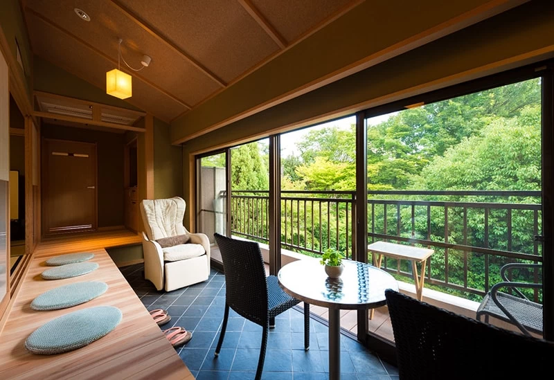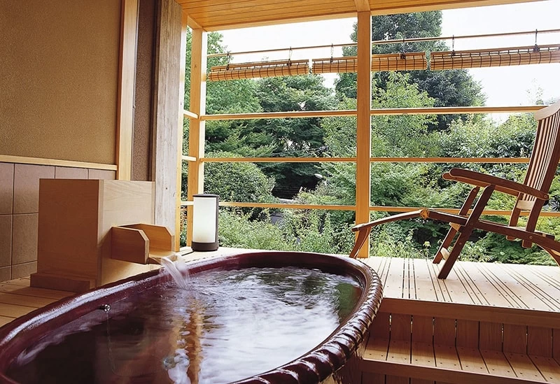 Just a 2-minute walk from Kintetsu Nara Station, Kasuga Hotel offers a peaceful retreat beside the UNESCO World Heritage Site Kofukuji Temple. Surrounded by greenery, the hotel features guest rooms with private open-air baths and garden baths where guests can soak in the soft morning light or relax under the moon. The sound of Kofukuji’s evening bell at 6 p.m. adds to the tranquil atmosphere.
