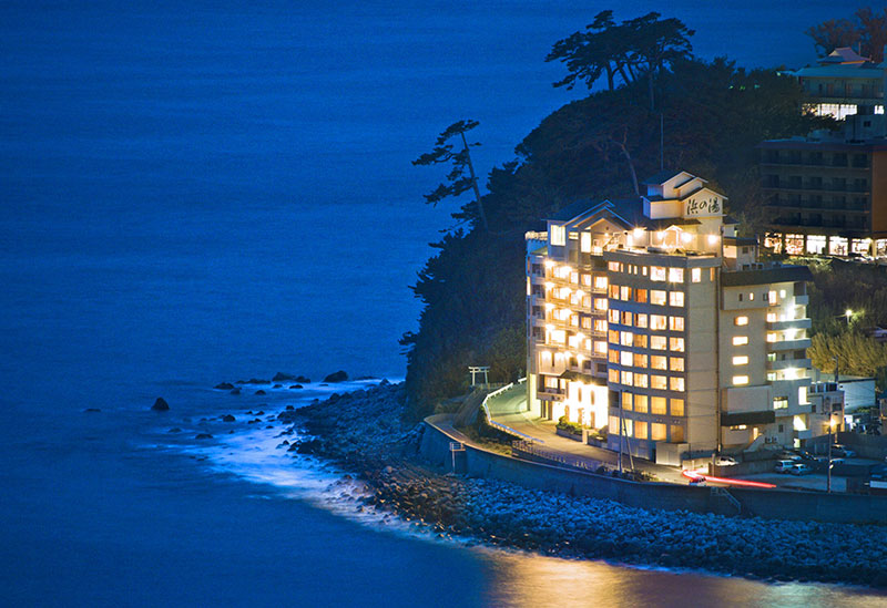 Renewed in October 2022, Hamanoyu stands in the Izu Inatori hot spring area, overlooking the Pacific Ocean. Since its founding, the inn has embraced the concept of "a ryokan for dining,” presenting an abundant selection of lavish seafood dishes that reflect the culinary character of Izu. The greatest form of hospitality, however, lies in the sweeping ocean panorama—nature’s own masterpiece—where sunrise and moonrise create especially striking scenes. Spanning the entire eighth floor, the bath facilities feature sixteen baths accompanied by spectacular views of sea and sky. Private spa spaces, complete with a löyly sauna and open-air bath, offer an exclusive retreat for quiet relaxation. Immersed in the sights, sounds, and atmosphere of the ocean, each stay unfolds as a refined and indulgent escape.
