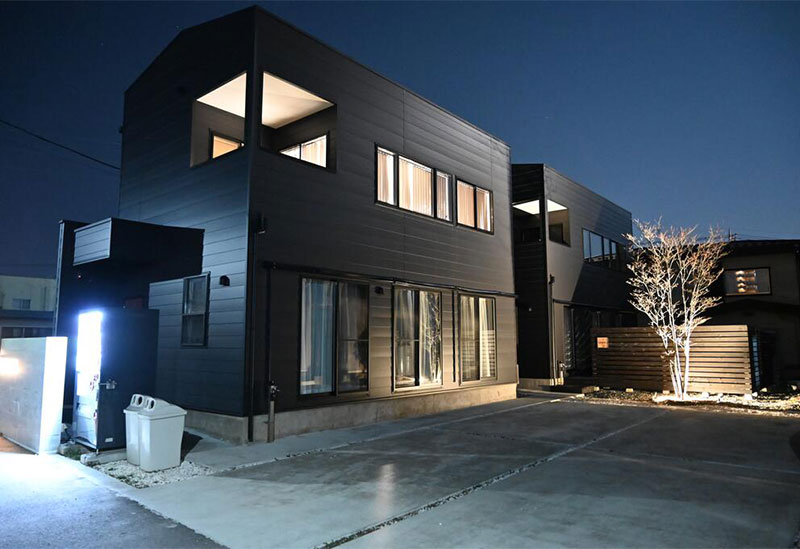 This stylish villa is located about an eight-minute walk from Kawaguchiko Station, the terminus of the Fujisanroku Electric Railway. The chic, modern space features three unique bedrooms, a spacious living and dining area, and a functional kitchen equipped with appliances and utensils, ensuring both comfort and practicality. On the deck, a barrel sauna and a jetted bath are available for unlimited use throughout the stay. About a five-minute walk away, a cafe that also serves as the check-in counter opens at 8:30 A.M., making it an appealing choice for breakfast.
