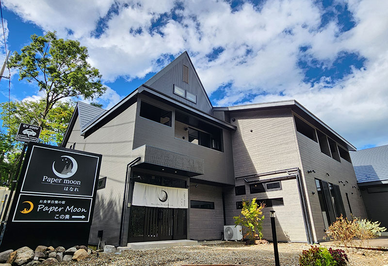 At "Papermoon Hanare", you can relax surrounded by the nature of the Nasu Highlands and enjoy various all-inclusive plans. All guest rooms are equipped with a mini kitchen, offering a condominium-like atmosphere where local ingredients can be prepared and enjoyed. The lounge features more than 20 varieties of drinks and snacks, including freshly ground coffee, tea, beer, wine, and sake, allowing for a relaxing drink on the terrace while gazing at the starry sky.